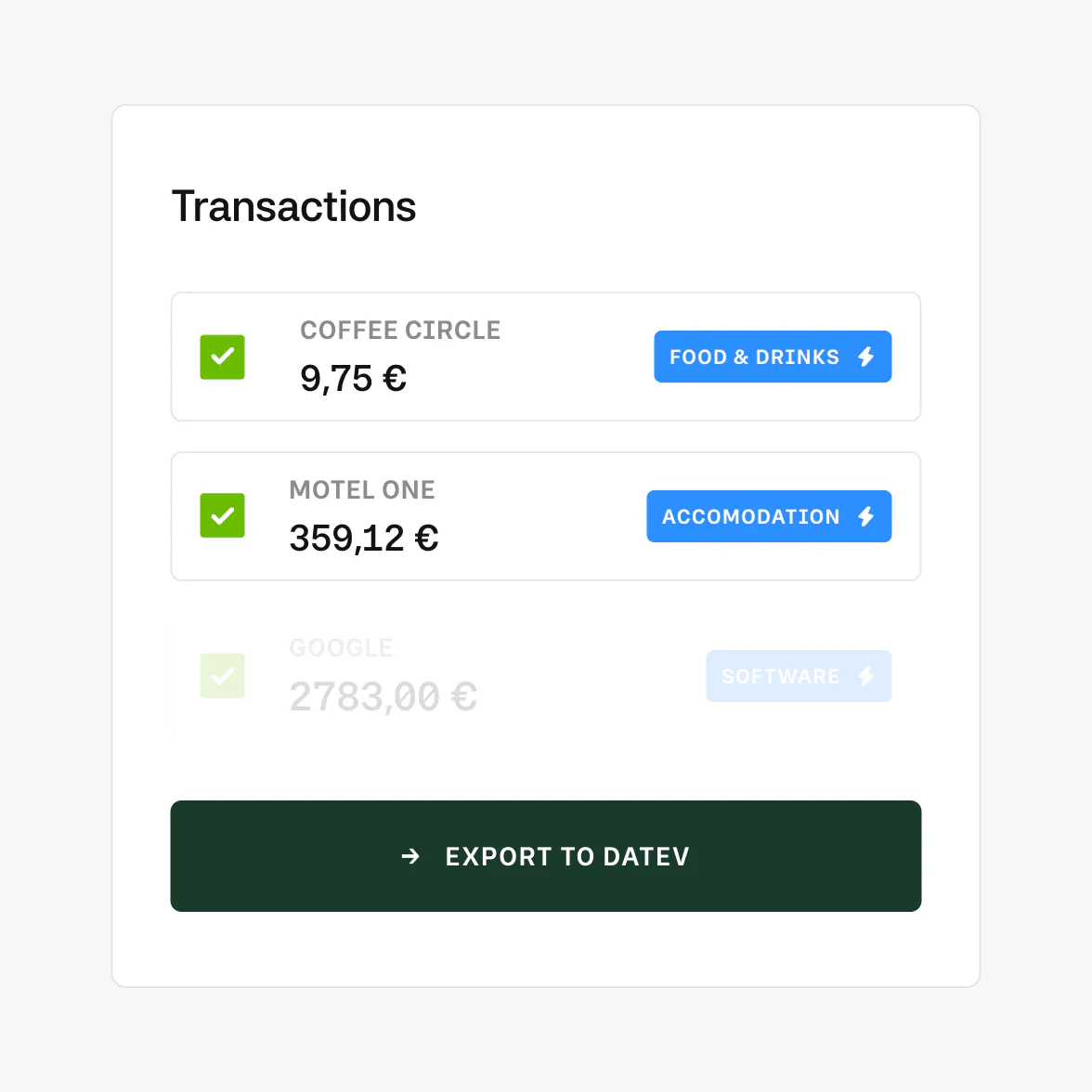 Synchroniseer onkosten en ingevoerde betalingen met je boekhoudsysteem via API of CSV om je boekhouding accuraat te houden.